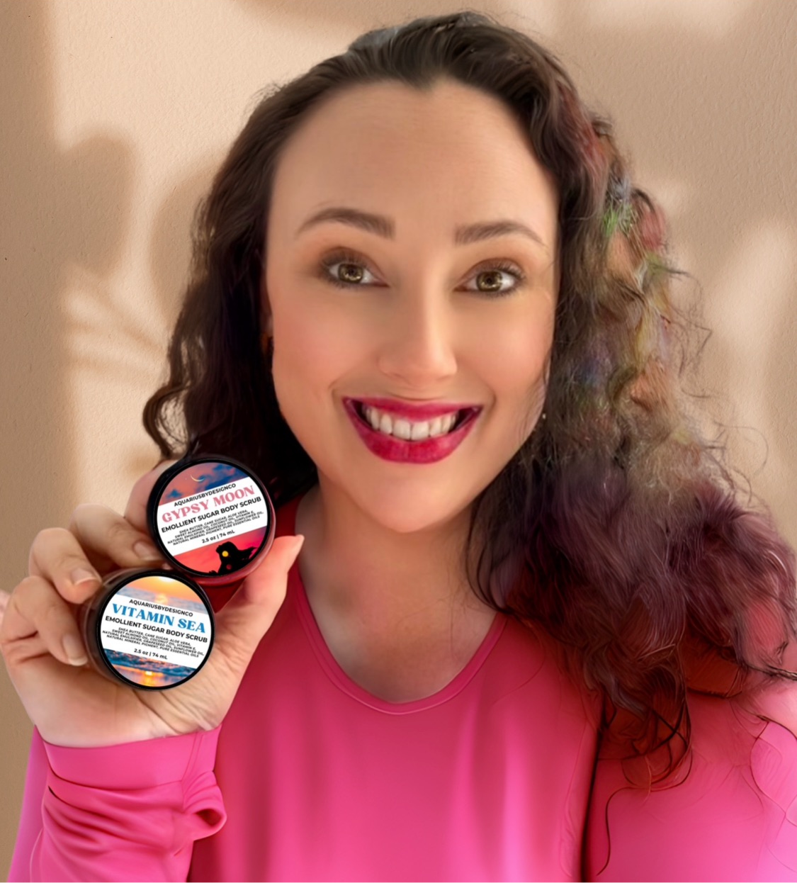 SHEA BUTTER, GRANULATED SUGAR, ALOE VERA, SWEET ALMOND OIL, VITAMIN E, SUNFLOWER OIL, COCONUT OIL, GRAPESEED OIL, NATURAL EMULSIFIER, PREMIUM FRAGRANCE OILS, ESSENTIAL OILS, NATURAL MINERAL & SHIMMER PIGMENT